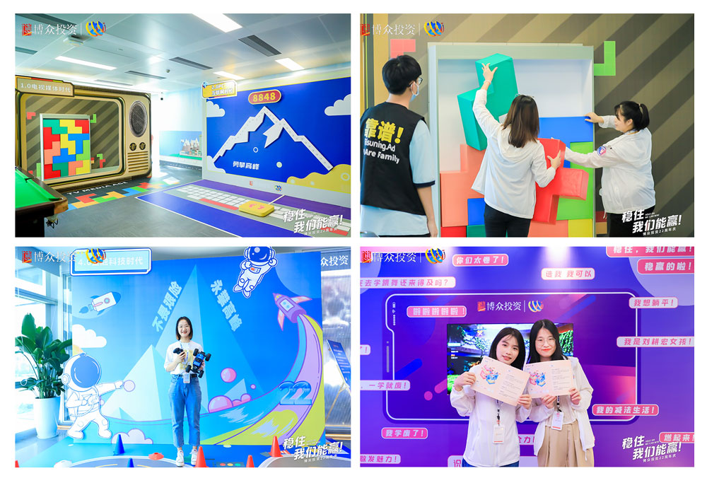 由廣州睿陽廣告有限公司策劃并執(zhí)行的博眾投資22周年慶典于2022年7月12日在廣州辦公區(qū)天德廣場舉辦,活動以“穩(wěn)住,我們能贏!”為主題,參與人數(shù)為850人左右。