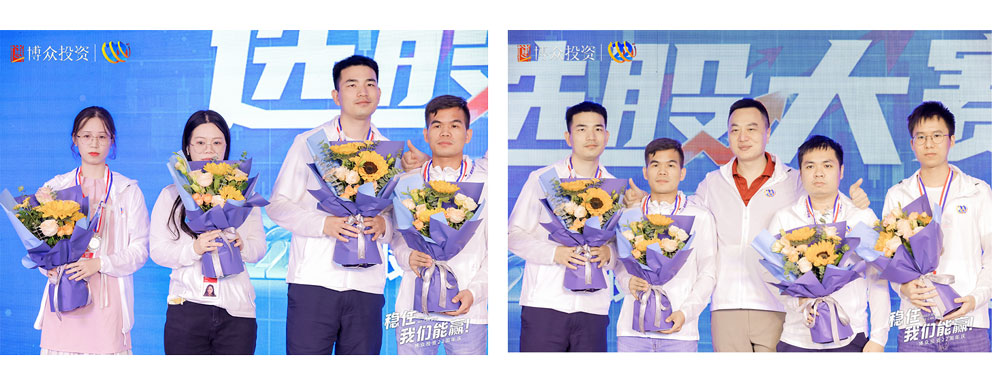 下一項則是選股大賽頒獎儀式,首先頒發(fā)的是銅獎獲得者,他們是陳紅董、梁世昌、黃建強(qiáng)、容偉彪、宋文皓、韋蘭忠、程琪、明振友、鄒小翠,由易米的劉總為9為獲獎?wù)哌M(jìn)行頒獎以及合影留念。緊接著頒發(fā)銀牌獲獎?wù)撸麄兪牵宏悹N、陳威、張偉秋、勞志炳、謝俊。繼續(xù)由易米的劉總為4位獲獎?wù)哌M(jìn)行頒獎以及合影留念。
