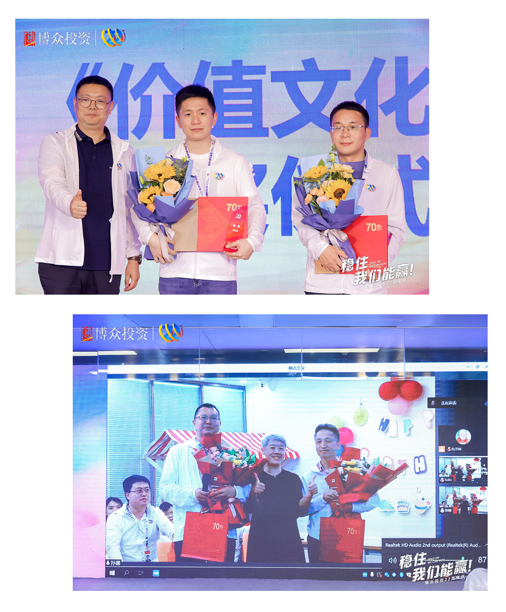 下一項慶典議程是博眾文化頒獎儀式,首先頒發(fā)的是“以奮斗者為本”獎。榮獲此項榮譽(yù)的團(tuán)隊,是由朱艷湘率領(lǐng)的行政部。緊接著,頒發(fā)的是“本分”獎,榮獲此項殊榮的團(tuán)隊是柯炎敏率領(lǐng)的合規(guī)部。均由鄒總為獲獎團(tuán)隊頒發(fā)榮譽(yù)并進(jìn)行合影留念。